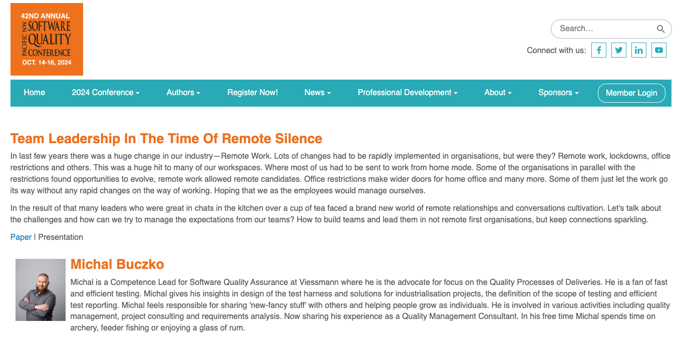 2nd event on my 2nd half of 2024 season was a visit to West Coast of US. I had the privilege to be the speaker on the Pacific North West Software Quality Conference and it was the 42nd edition of the conference !! The conference is older than myself !!
